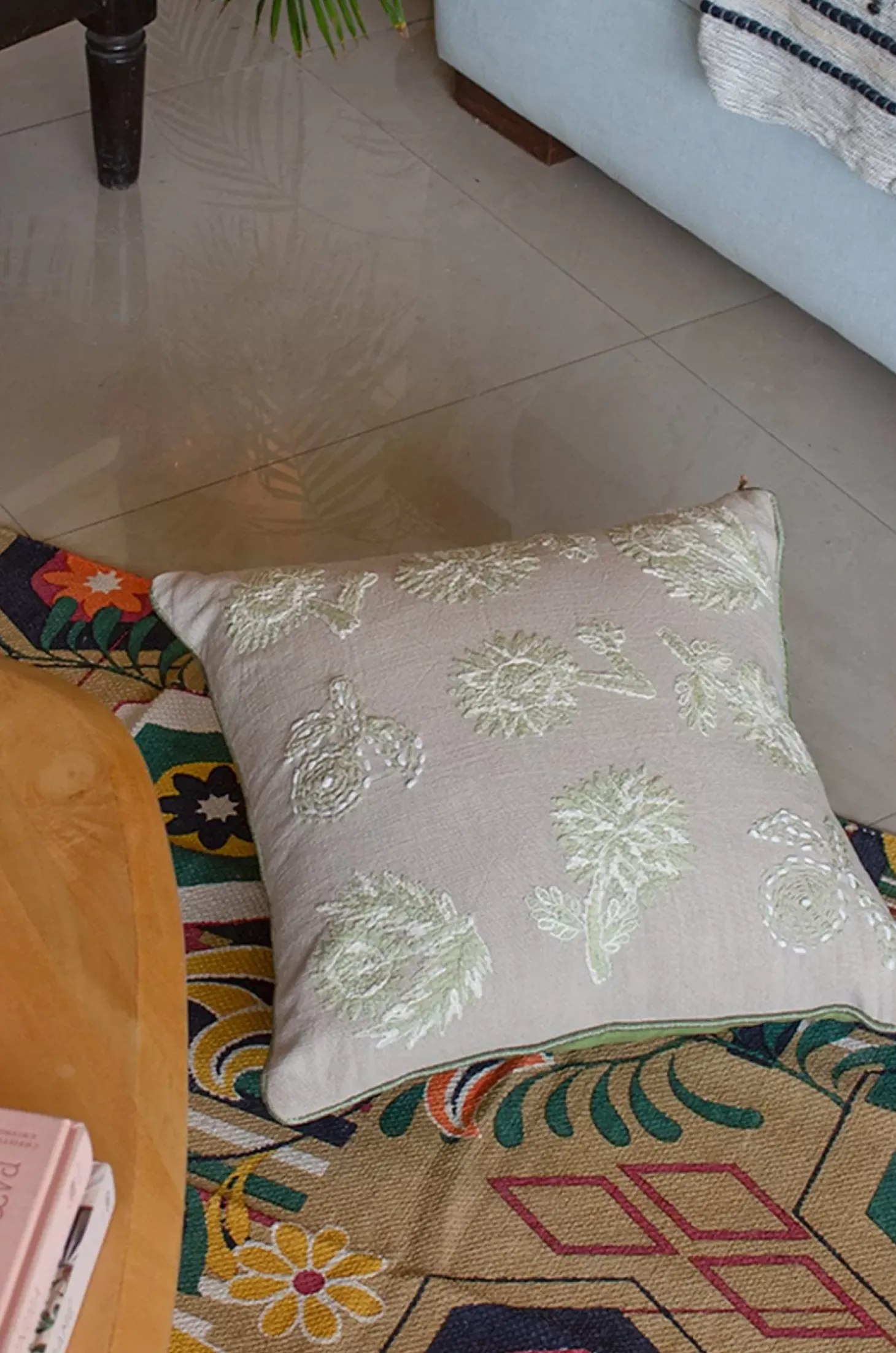 Dew Drops Embroidered Cushion Cover