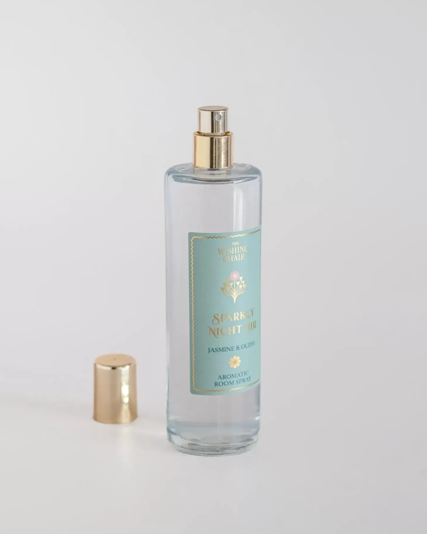 Description: 100 Ml Room Freshener In Glass Bottle With Gold Screw Pump