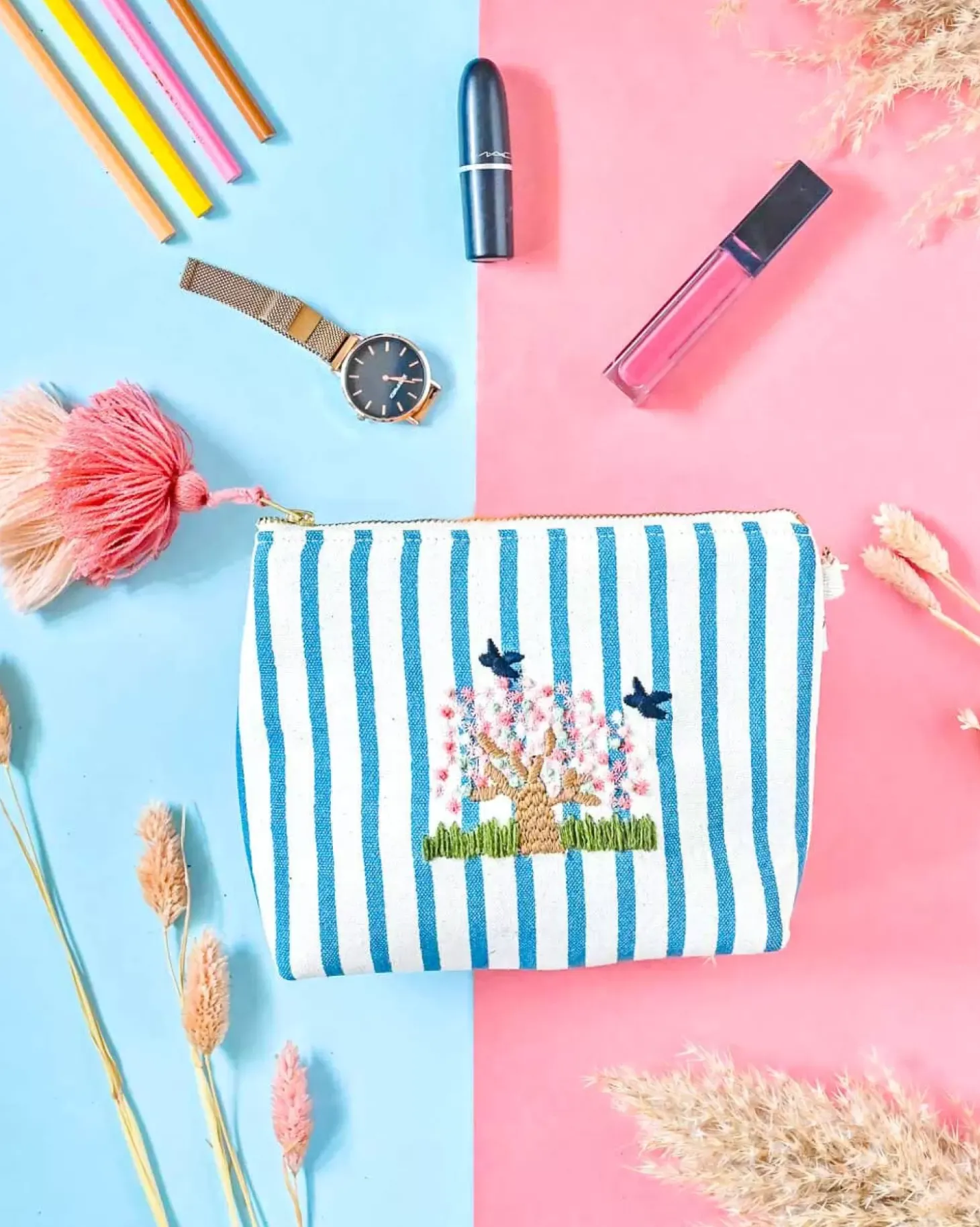 Be the first to review “Cherry Blossom Dusk Embroidered Pouch” Cancel reply